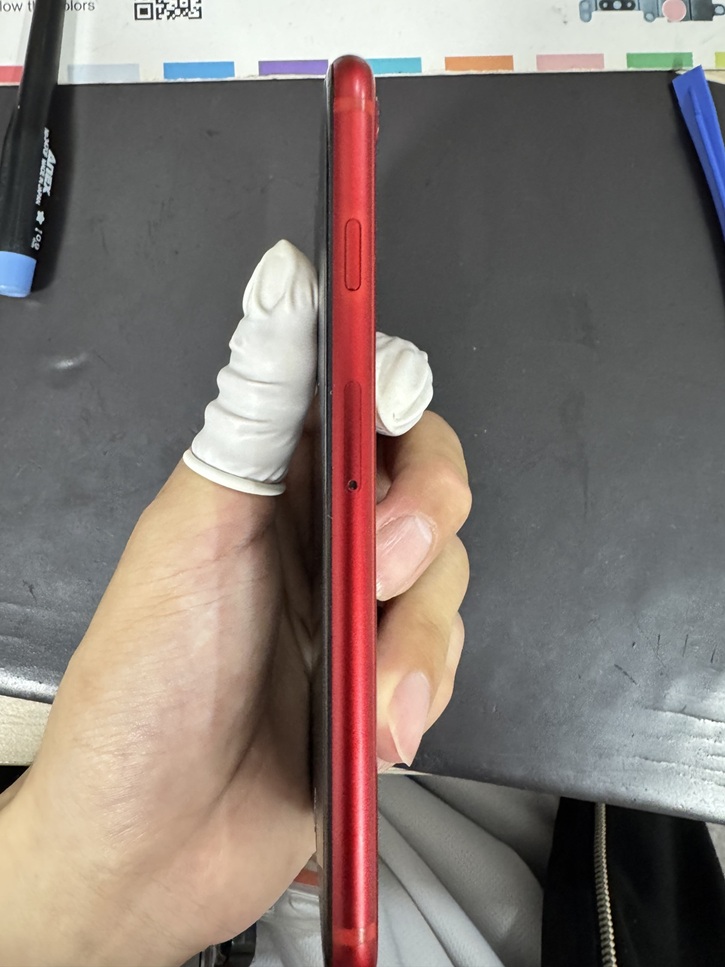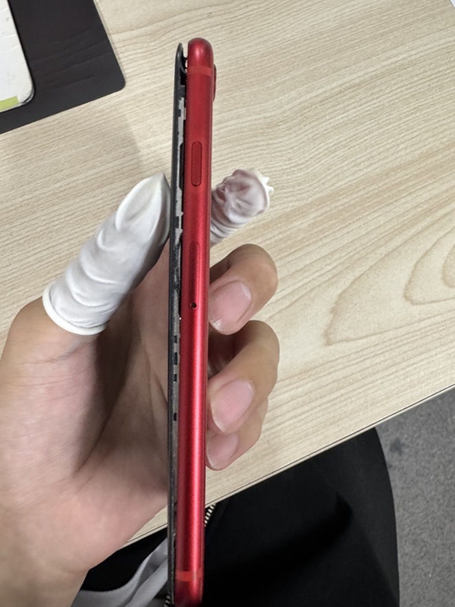 iPhoneを横から見ると、バッテリーが膨張している影響で画面が浮いてしまっています。