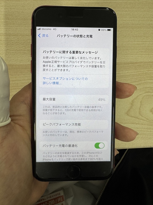 バッテリーの最大容量も49%と、かなりバッテリー自体も劣化していました。