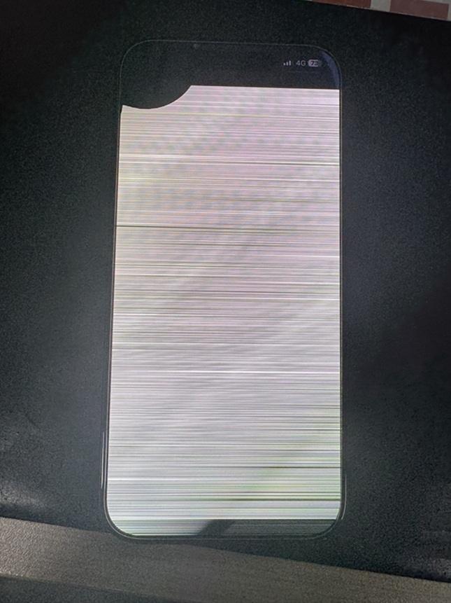 今回の端末は、落としてしまった影響で左上に液晶漏れが発生し、右上の電波表示とバッテリー残量の表示以外は横線が画面全体にでており、何も出来ない状態でした。