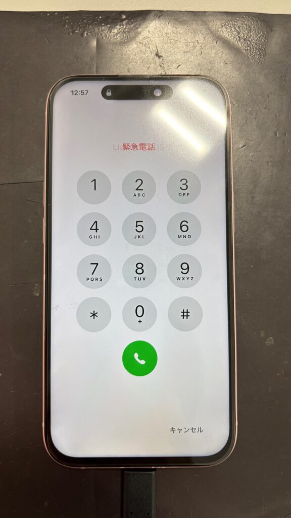 さっそくですが本日は画面がバキバキに割れ表示もされなくなったというiPhone15のご紹介です。まずは見てみましょう。