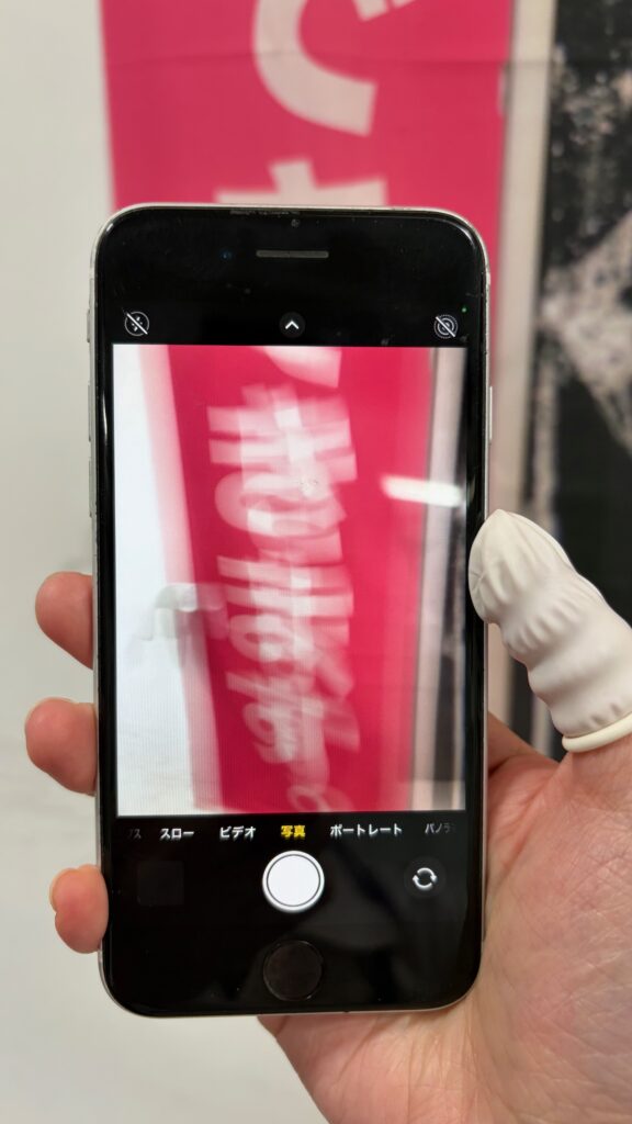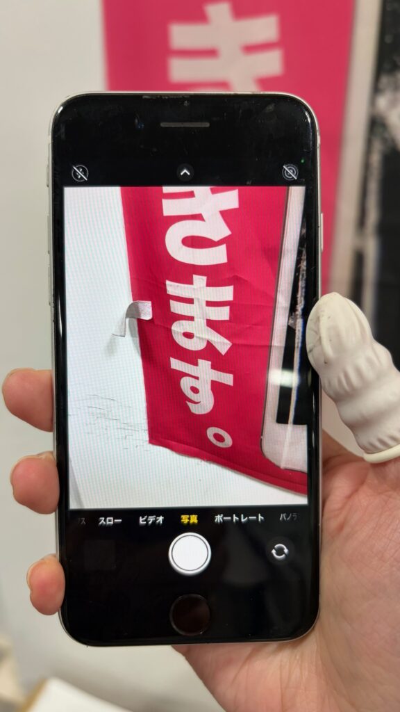 さっそくですが本日はカメラのピントが合わなくなったというiPhoneSE2のご紹介です。状態を見てみましょう。