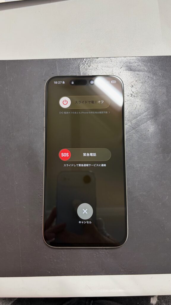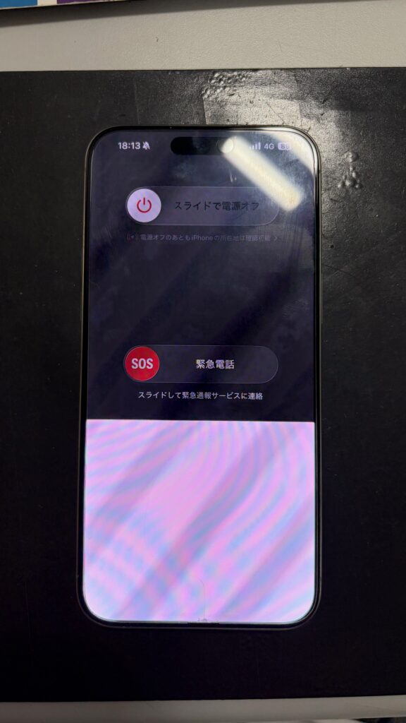 さっそくですが今回は表示がおかしくなったというiPhone15ProMaxのご紹介です。まずは状態を見てみましょう。